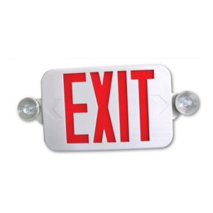 LED Combo Exit/Emergency, 2 Faces, White Housing, Red Letters, Battery Backup, 120-277V