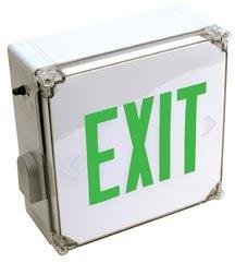 Wet Location Exit Sign, Green Letters, Battery Backup, 120-277V
